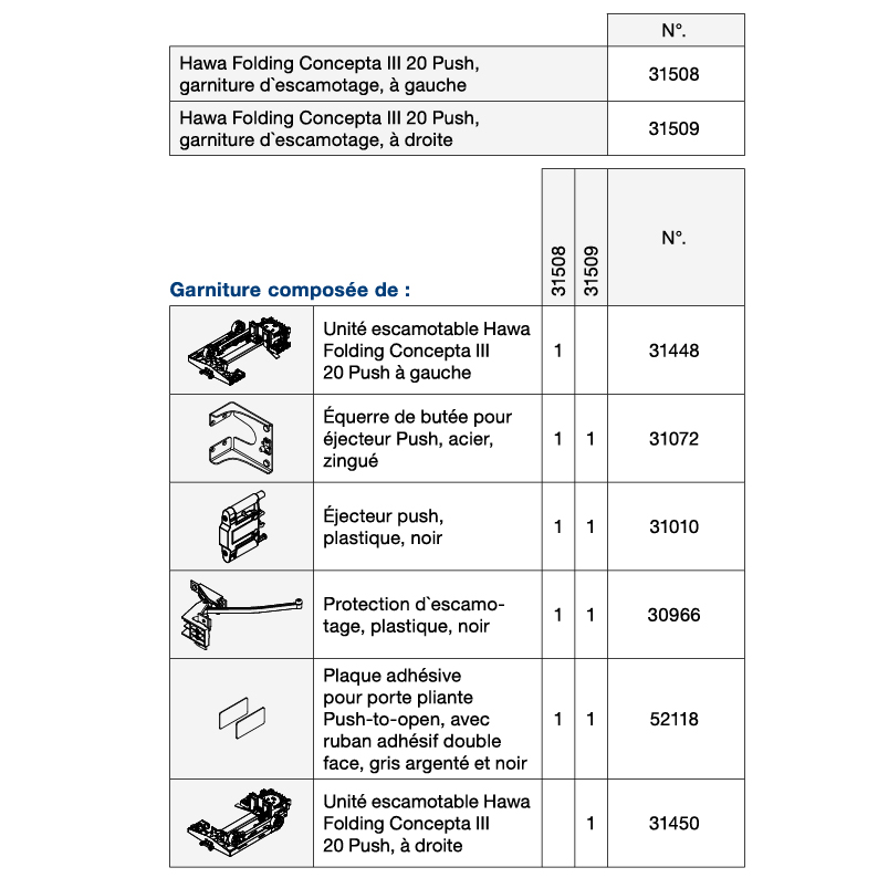 Garniture d'escamotage HAWA Folding Concepta III 20 Push