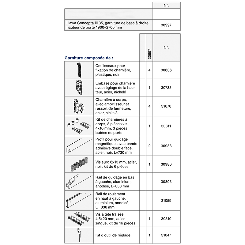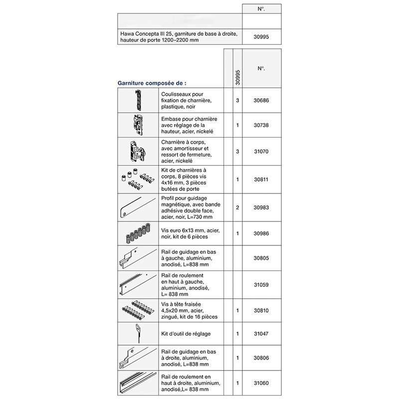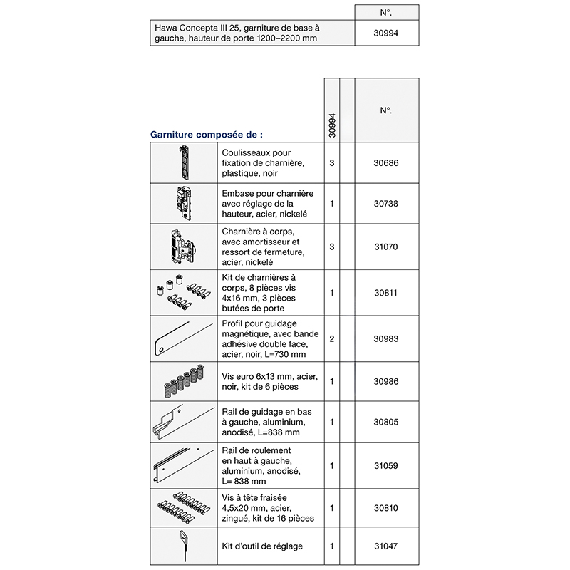 Garniture de base HAWA CONCEPTA III 25