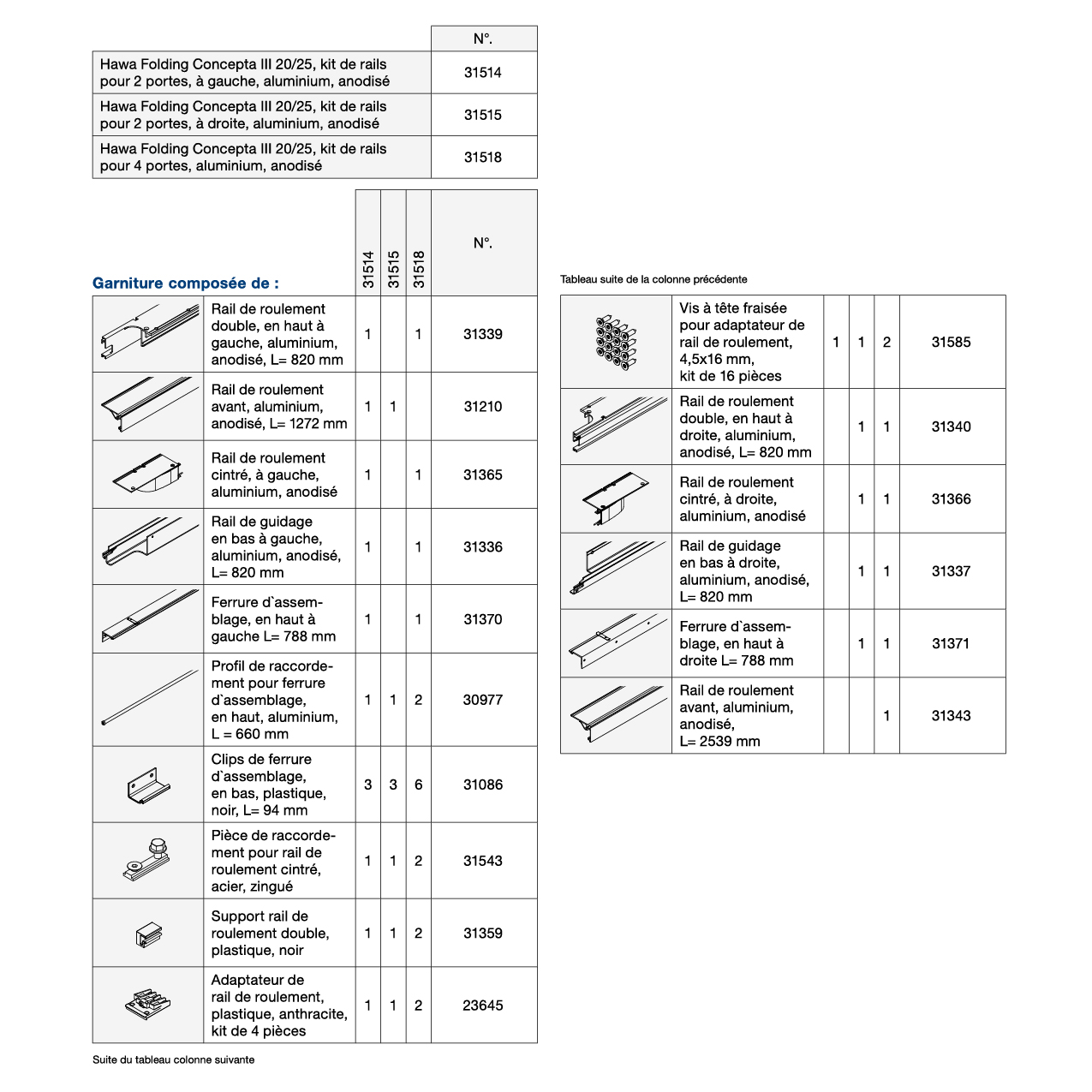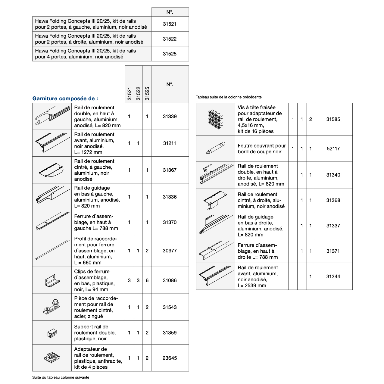 Kit de rails 2 portes HAWA Folding Concepta III 20/25