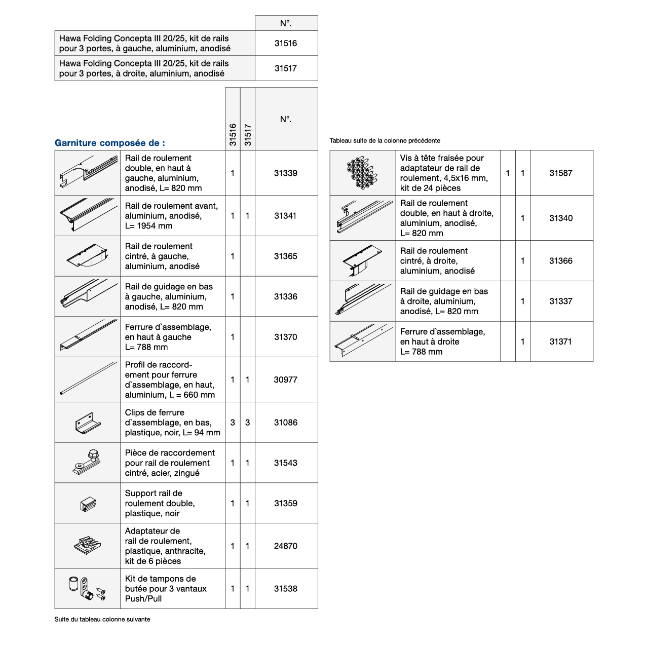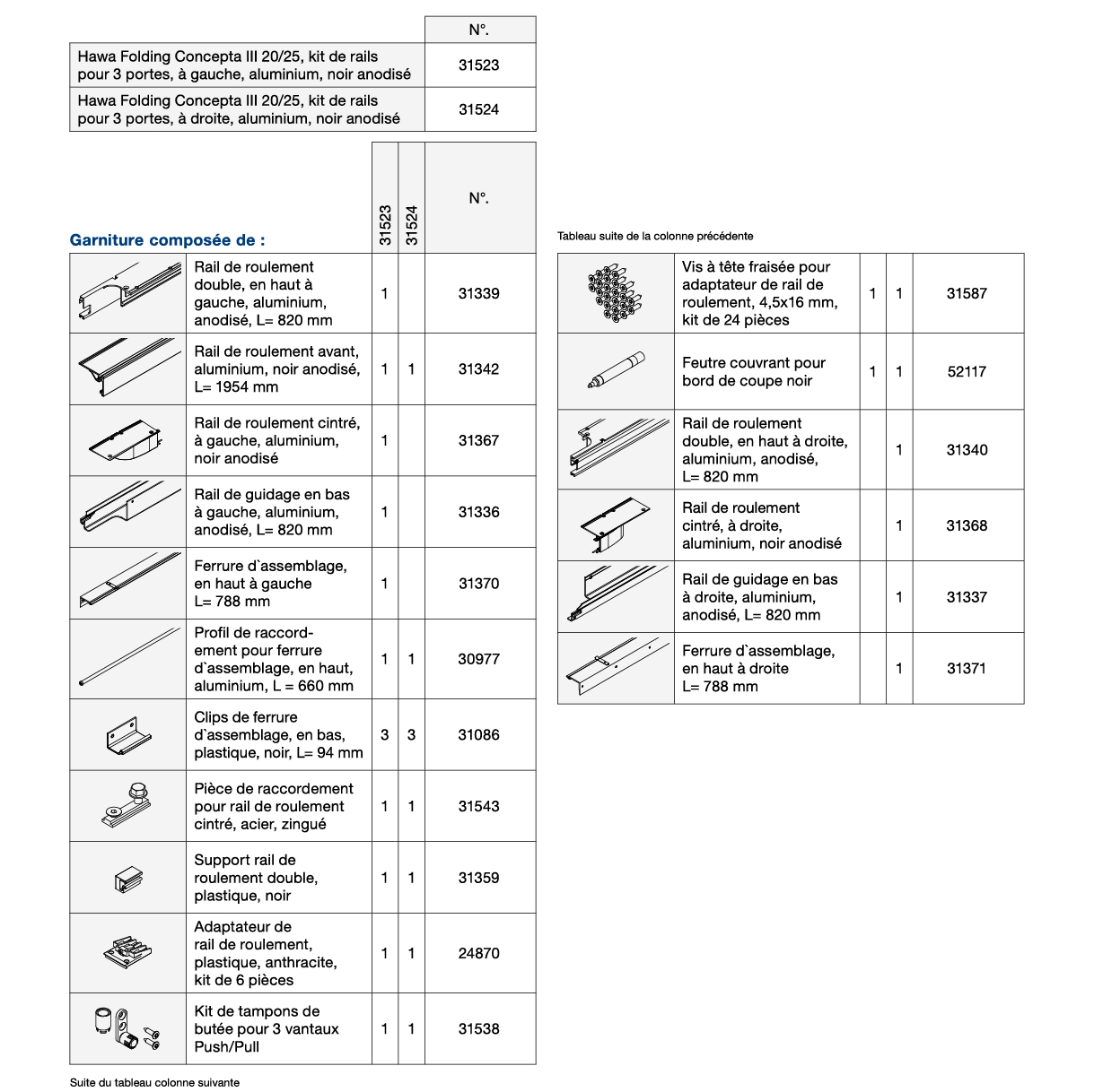 Kit de rails 3 portes HAWA Folding Concepta III 20/25