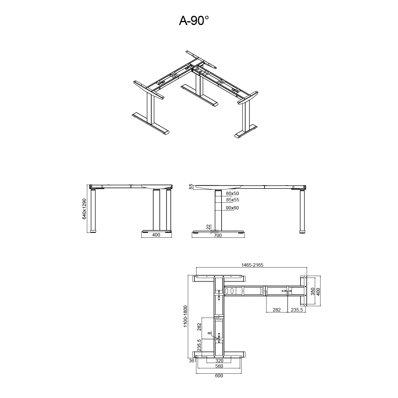- Largeur du cadre: 1100 - 1800 mm