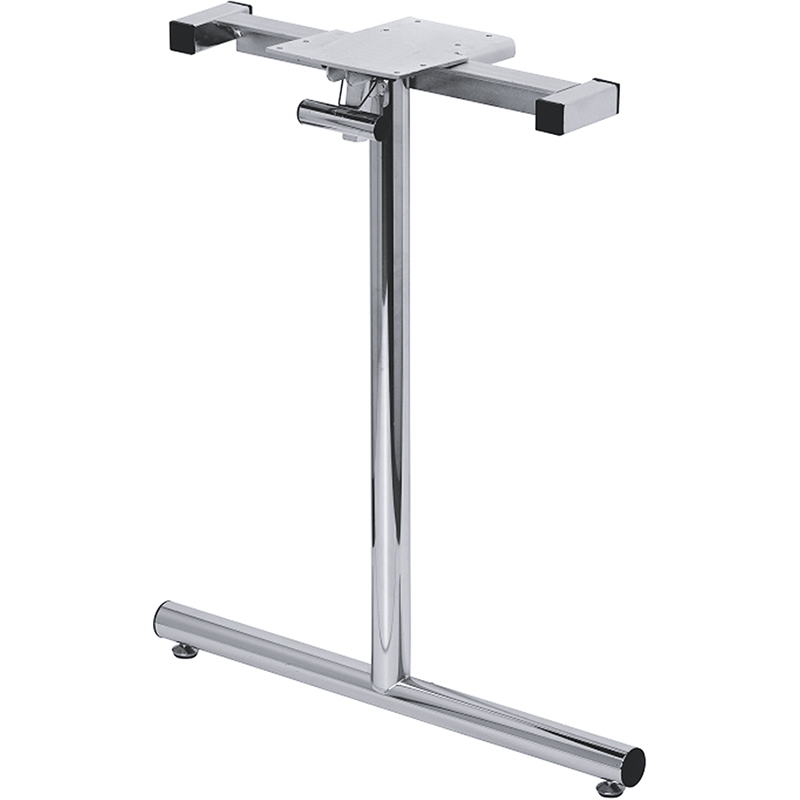 Tube en acier poli et chromé, pied en T droit avec 2 stabilisateurs au profil arrondi,