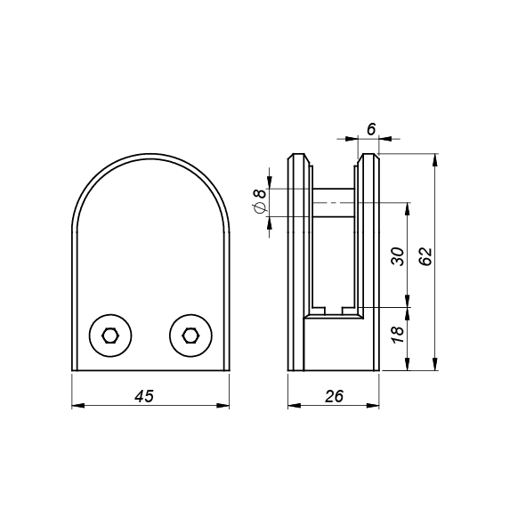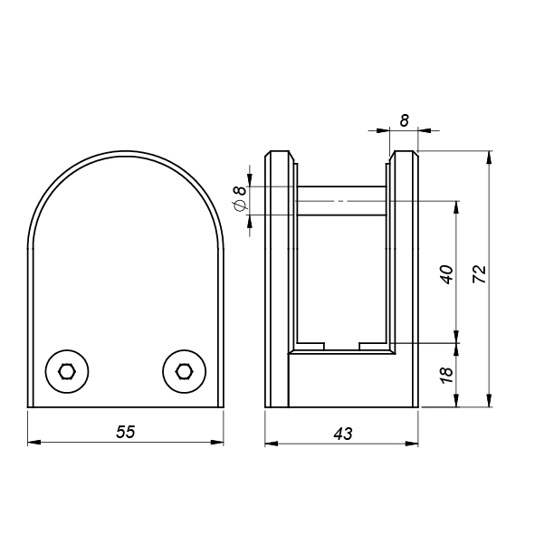 Inox V4A dépoli, avec goupille de sureté et garniture en caoutchouc, pour montage sur tube carré ou avec optimale rond tube adaptateur