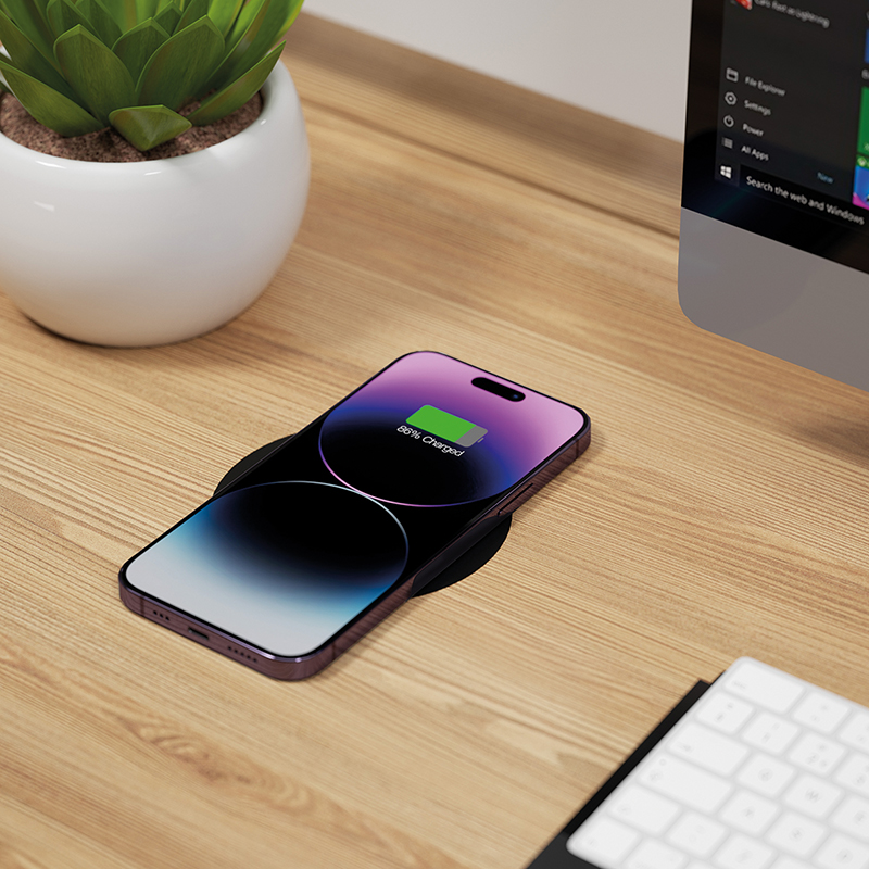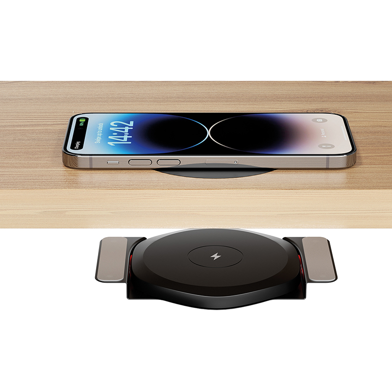 Station de charge inductive pour téléphones portables avec charge rapide QC 3.0, max. 10 W, montage simple par collage ou vissage, sans aucun perçage, convient pour des plaques d'une épaisseur de 10 à 30 mm, noir