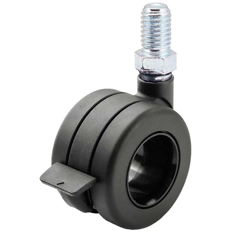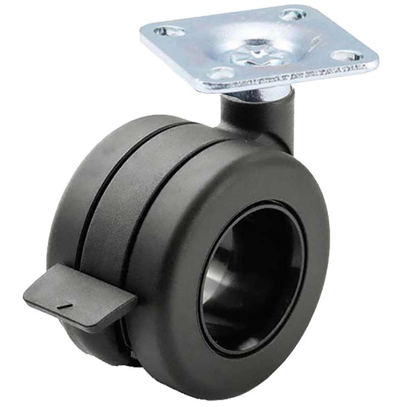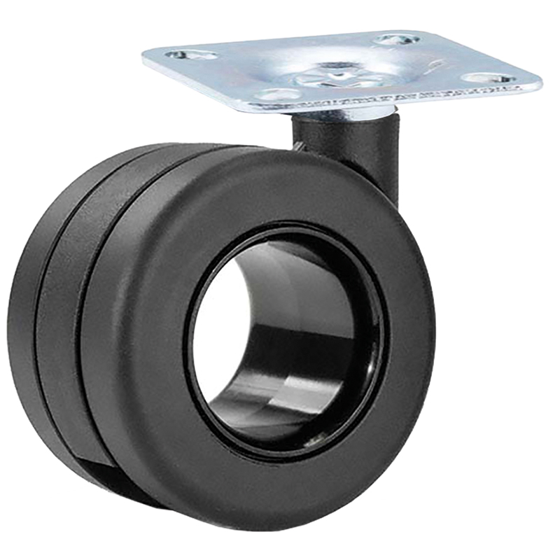 Boîtier en plastique noir, roue en polyuréthane noir, souple, pour parquet et sol stratifié, Ø de la roue 65 mm, largeur de la roue 2 x 13 mm, capacité de charge 50 kilos