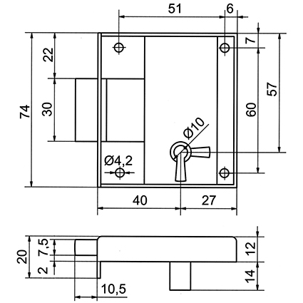 Serrure de meuble HEUSSER, avec clé numérotée, à visser, avec têtière