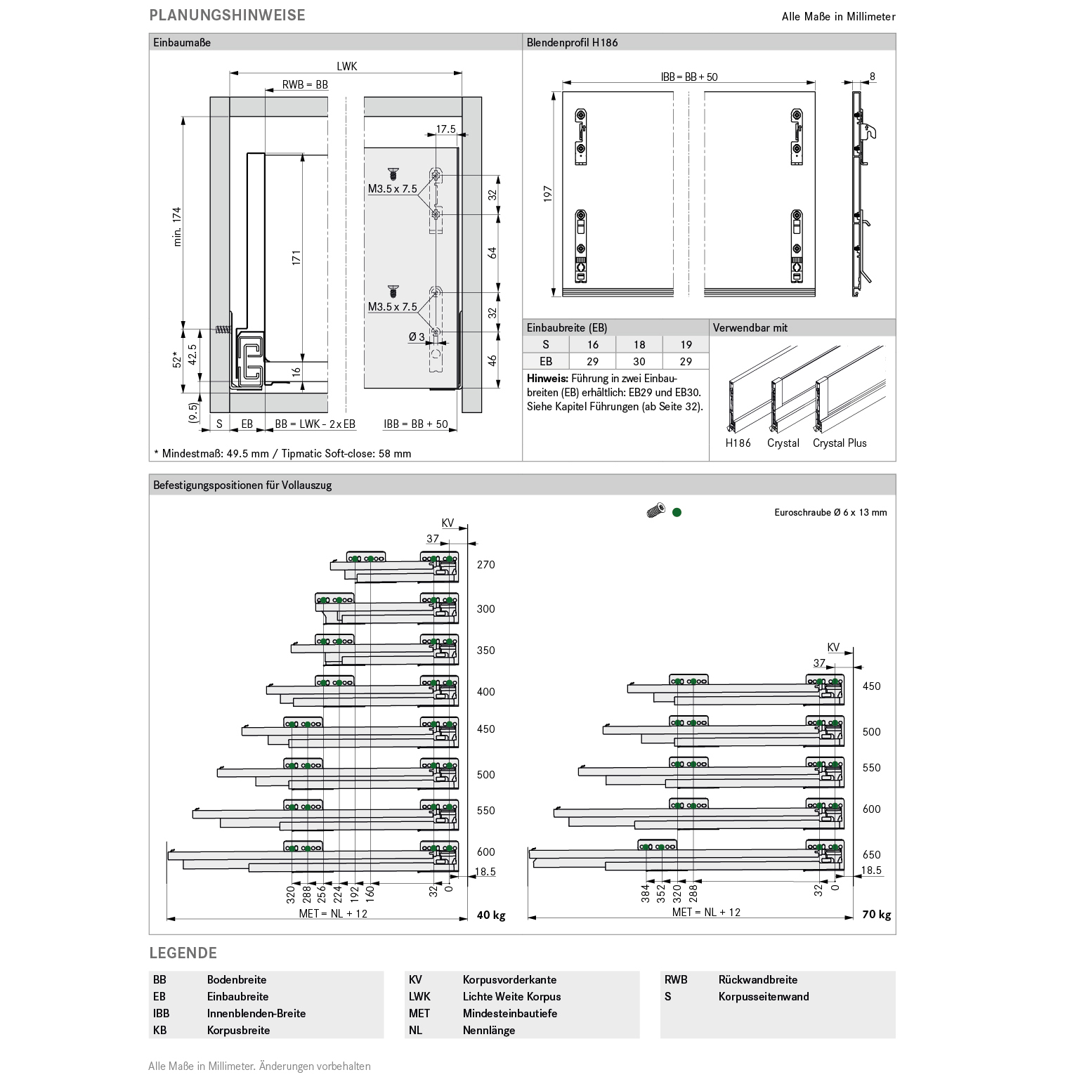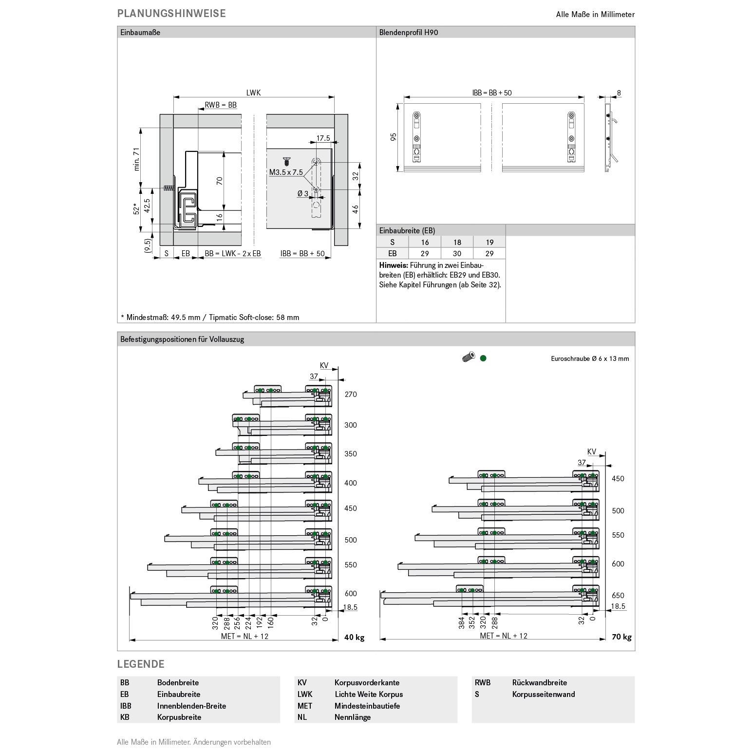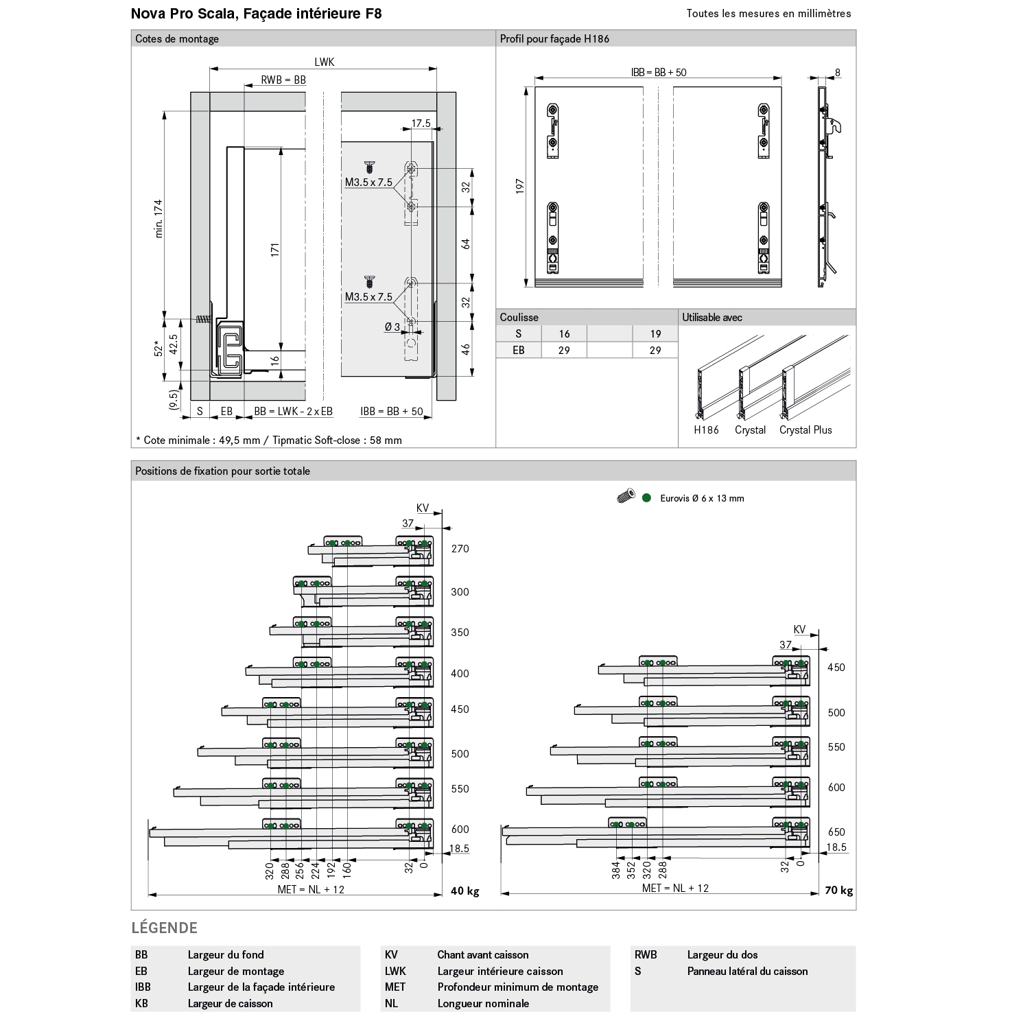 Cache l'intérieur GRASS® F8 Nova Pro Scala, hauteur 90 / 186 mm, à découper