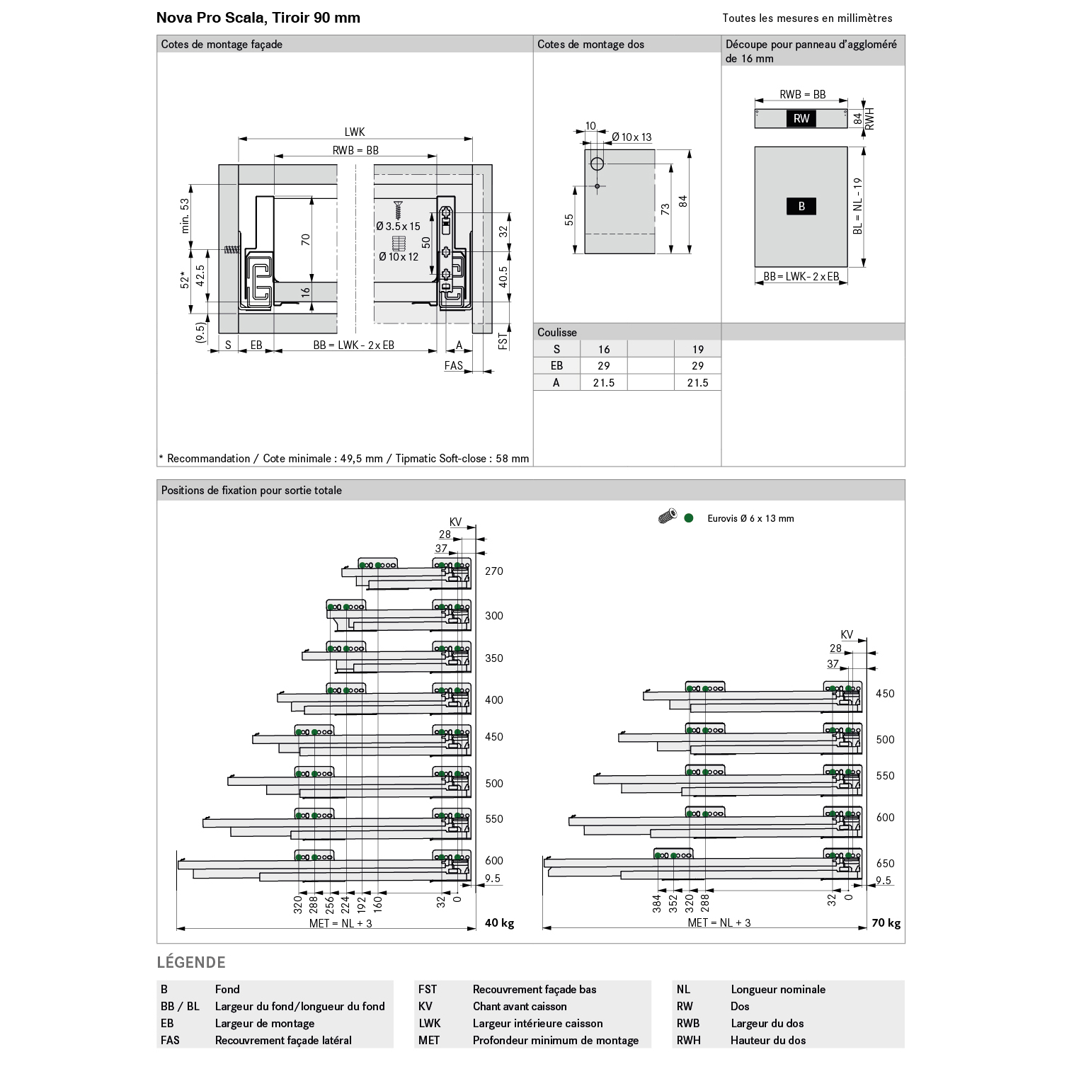 Châssis GRASS® Nova Pro Scala, hauteur 90 mm