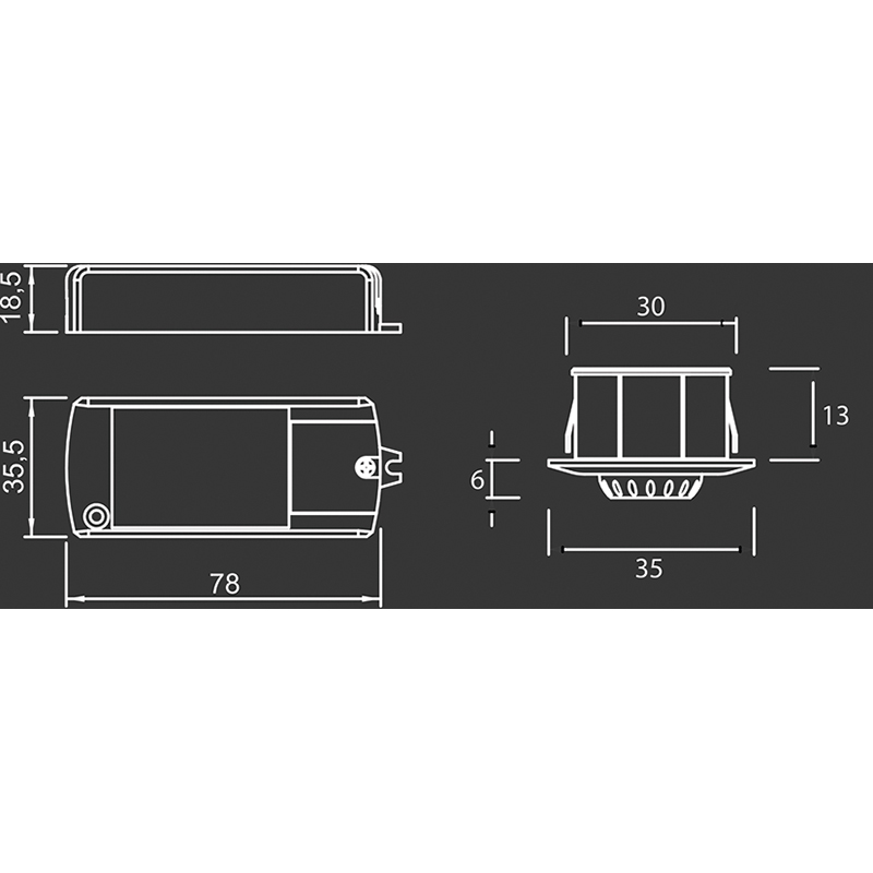 blanc, tension d'entrée 230 volts, puissance de commucation des modules de commandes LED de 150 watts, ligne primaire 2000 mm avec de prises plates Euro, ligne secondaire de 500 mm avec raccord plat Euro, connexion de capteur 2000 mm, capteur mat nickelé / noir, cote d'implantation 30 x 13 mm, cote de construction apparente 35 x 19 mm