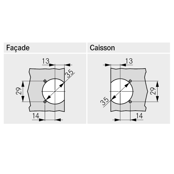 Zamak avec joints étroits, compatible Tipmatic, poids de porte jusqu'à max. 12 kilos, angle d'ouverture 90°, réglage latéral +/- 1 mm, réglage en profondeur + 5 / - 0 mm, réglage du recouvrement + 2 / - 3 mm, recouvrement haut jusqu'à 19 mm, ne convient pas pour les abattants s'ouvrant vers le haut, sans caches, sans plaques d'adaptation