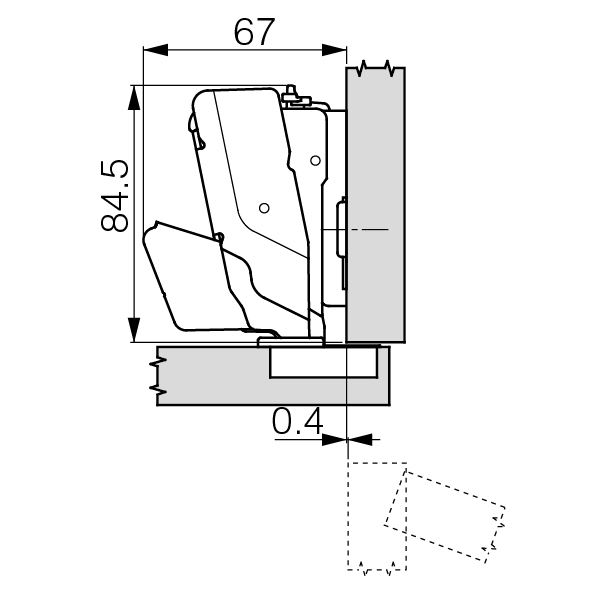 Charnière invisible GRASS® Tiomos 155° Click-on, gabarit de perçage 45 / 9,5
