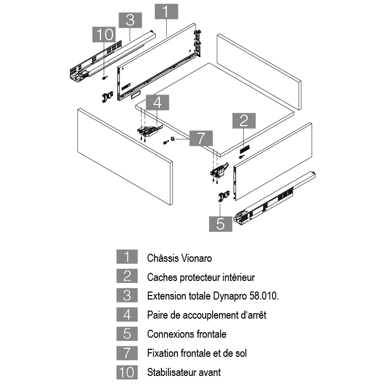- Cache l'intérieur pour tiroirs à l'anglaise, voir 58.209. et 58.215.