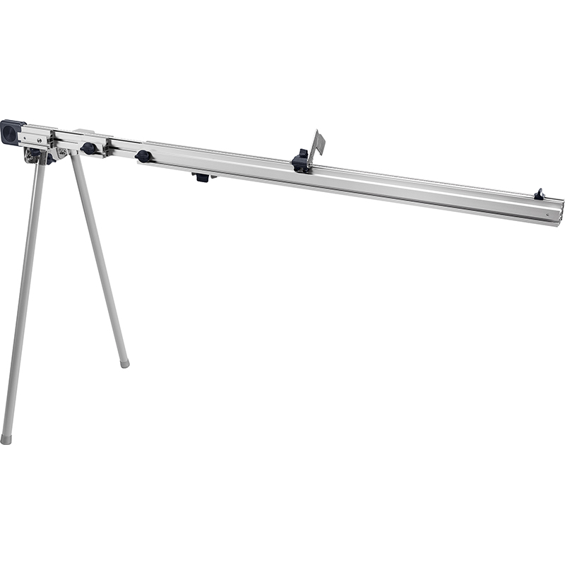 la butée à support conçue pour faciliter le raccourcissement des baguettes et des poutres avec la scie semi-stationnaire, grâce à l'échelle graduée et au curseur de butée, les cotes longitudinales peuvent être réglées facilement et rapidement, l'extension-butée se monte sur la butée angulaire encliquetable, Elle est donc directement utilisable, possibilité d'utilisation des deux côtés, escamotable, avec support de dépose, règle et curseur