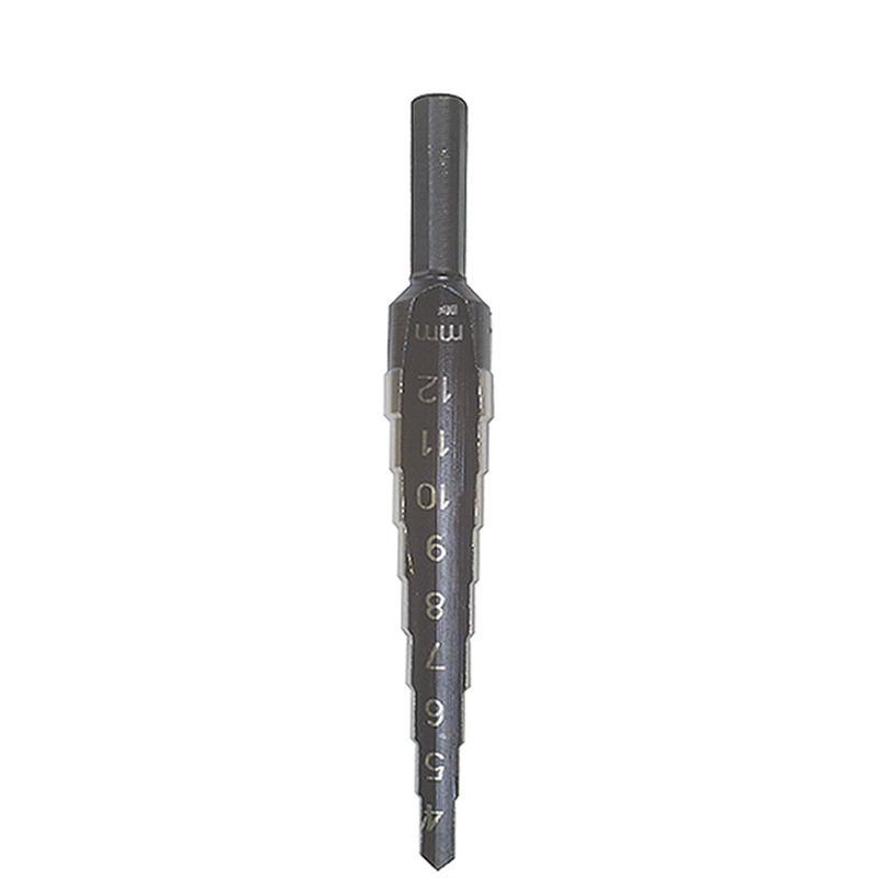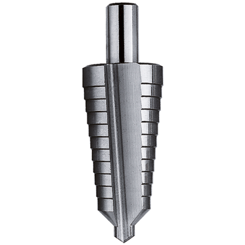 pointe de foret acérée, perçage immédiat sans pré-perçage, travail sans bavures ni marques de broutage, deux tranchants, transition de niveau à niveau de 45°, pour le perçage de trous plus grands dans des matériaux minces ainsi que pour l'alésage de trous existants dans l'acier inoxydable, l'acier, le cuivre, le laiton, l'aluminium, le bois, la tôle et autres matériaux à paroi mince
