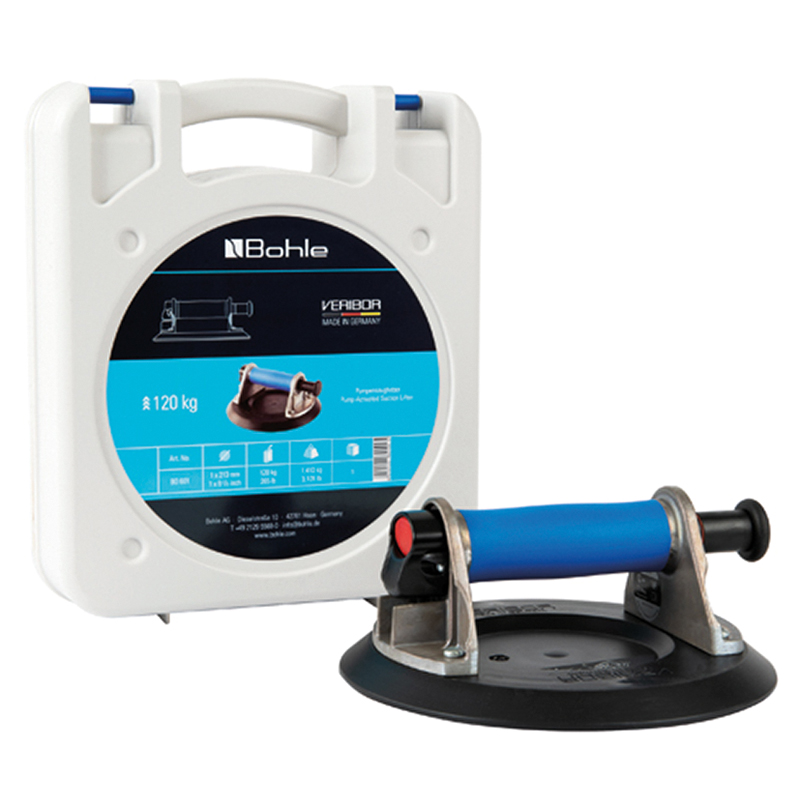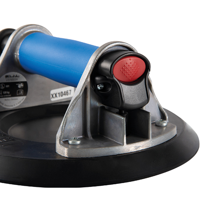 Corps en aluminium d'une grande longévité, avec poignée ergonomique revêtue d'une gaine en plastique. Force portante élevée pour soulever des charges importantes. Convient aux matériaux étanches au gaz comme le verre, le plastique, le métal, le bois revêtu et le marbre. Grande sécurité de fonctionnement grâce au contrôle visuel du vide sur la pompe à main. Livré dans un coffret.