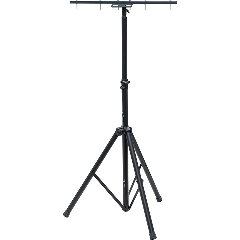 le Trépied télescopique ST 200 de chantier avec système d'abaissement automatique permet un réglage en continu de la hauteur de 1,08m à 2m, en outre, le trépied offre des possibilités de fixation flexibles, y compris un T-Bar pour le montage d'un seul projecteur ainsi qu'un support transversal pour le montage de deux projecteurs, le système d'abaissement automatique garantit un abaissement contrôlé pour une sécurité supplémentaire, le trépied télescopique avec une charge maximale de 30kg et un support de câble intégré,