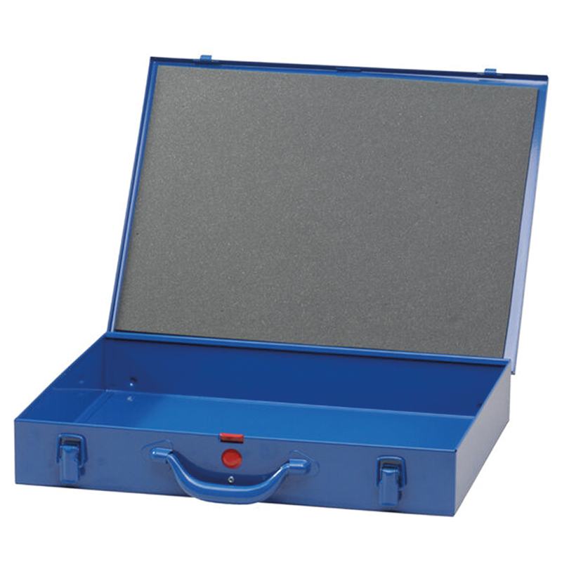 tôle d'acier peinte époxy bleu foncé, sécurité du couvercle contre l'ouverture involontaire, avec fermetures robustes à levier, sans bacs d'insertion, hauteur des bacs d'insertion = 63 mm