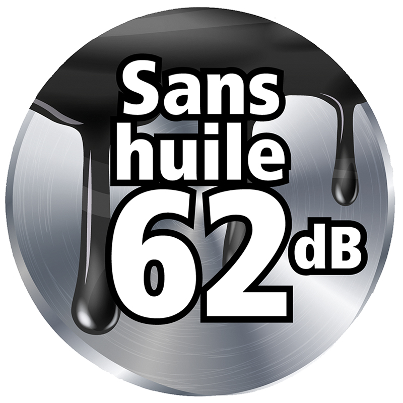 Compresseur AIR 8/130, sans huile, entièrement automatique, portable, groupe compresseur sans huile, à un étage, 2 cylindres, conforme à la norme CE, manostat automatique avec soupape de décharge, manomètre pour la pression du réservoir, soupape de retenue et soupape de sécurité, réservoir d'air comprimé avec soupape de purge de condensat, câble de raccordement de 2 m avec fiche 230 V, régulateur de pression avec manomètre