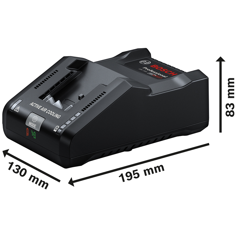 Chargeur ultra-rapide, charge complètement un ProCORE 18V 8.0Ah Professional en seulement 44 minutes, 3 modes de charge : Standard, PowerBoost et Long Life, la technologie Active Air Cooling refroidit les batteries et les maintient froides même pendant la charge, compatible avec le système 18V Bosch Professional et avec l'alliance de batteries AMPShare toutes marques confondues