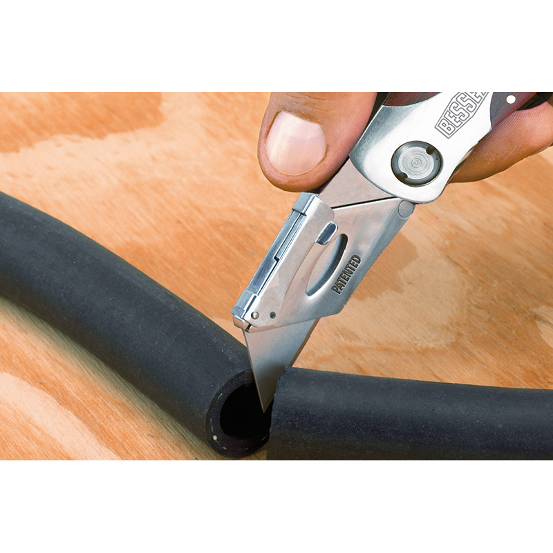 poignée en bois précieux, changement de lames rapide, clip de ceinture