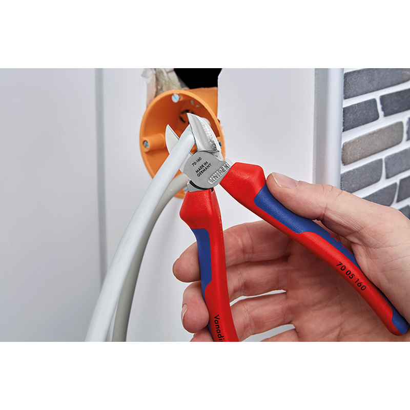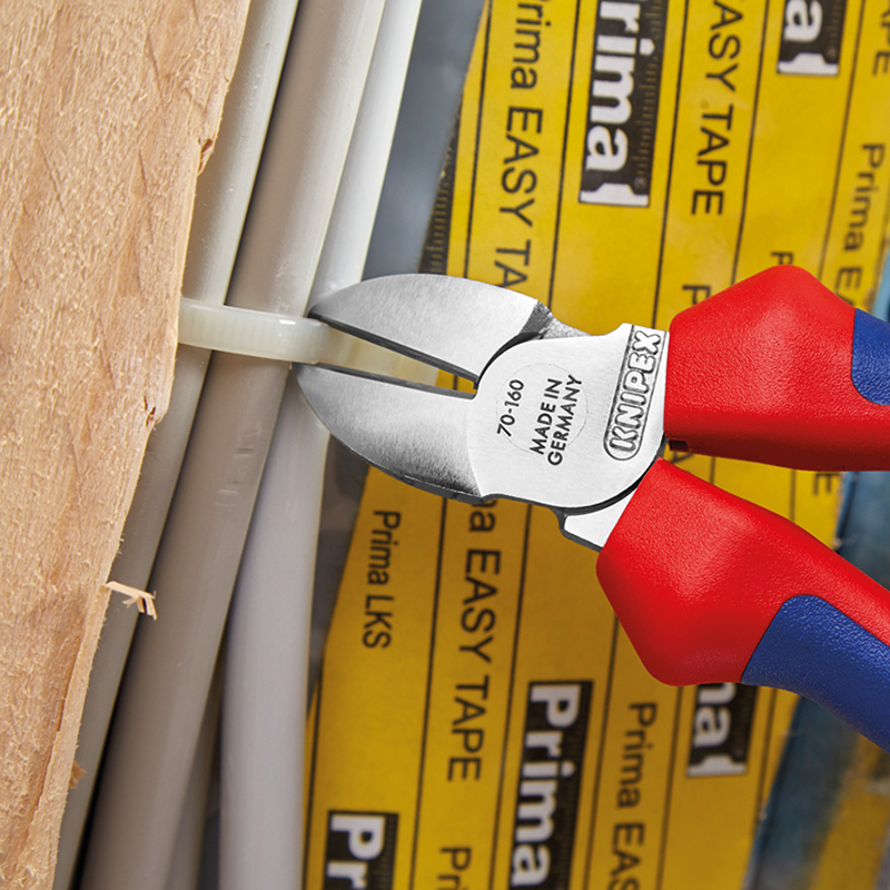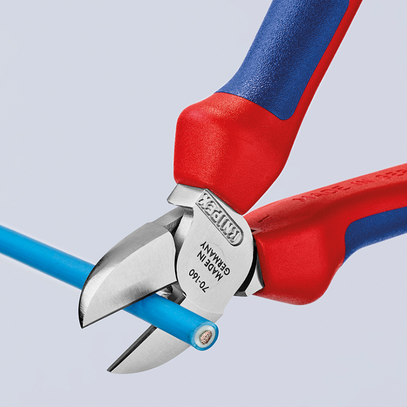 la pince coupante de côté indispensable pour une utilisation polyvalente, matériaux de qualité supérieure et finition de précision pour une longue durée de vie, tranchants de précision pour fils doux et durs, coupe nette des fils en cuivre fins, même en bout de tranchants, tranchants trempés par induction, dureté d'env. 62 HRC, tête étroite permettant une utilisation dans des endroits difficiles d'accès