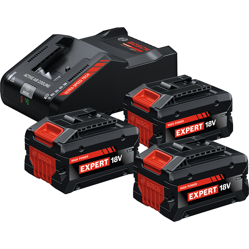 Design robuste, boîtier renforcé et excellente gestion de la chaleur avec COOLPACK 2.0, équipé de la dernière technologie de cellules "Tabless" pour une puissance maximale, une longue durée de fonctionnement et des temps de charge rapides, compatible avec le système 18V Bosch Professional et l'alliance de batteries AMPShare inter-marques