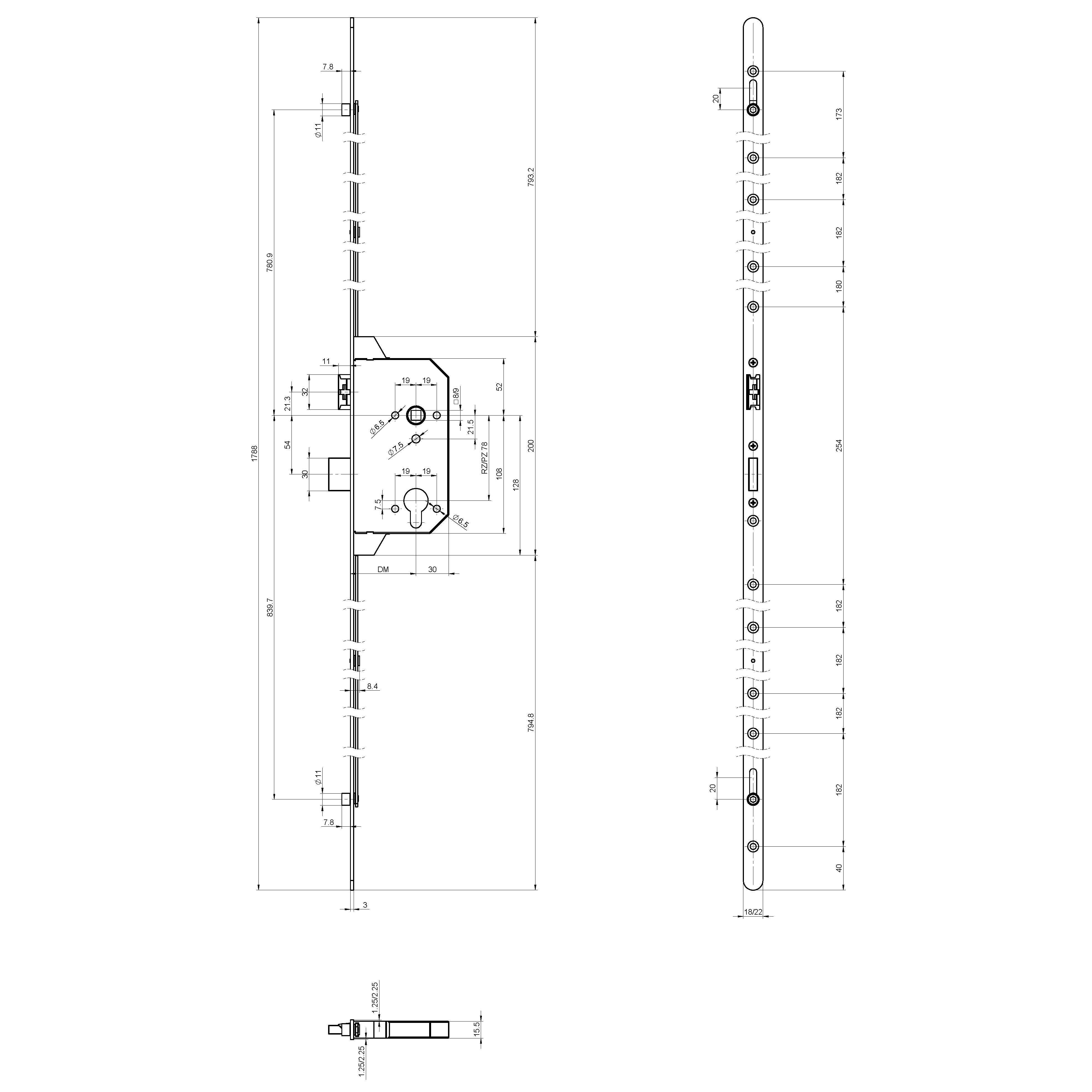 Verrouillage multipoints MSL RollTribloc 30700, têtière d'angle 18/20 x 1788 mm