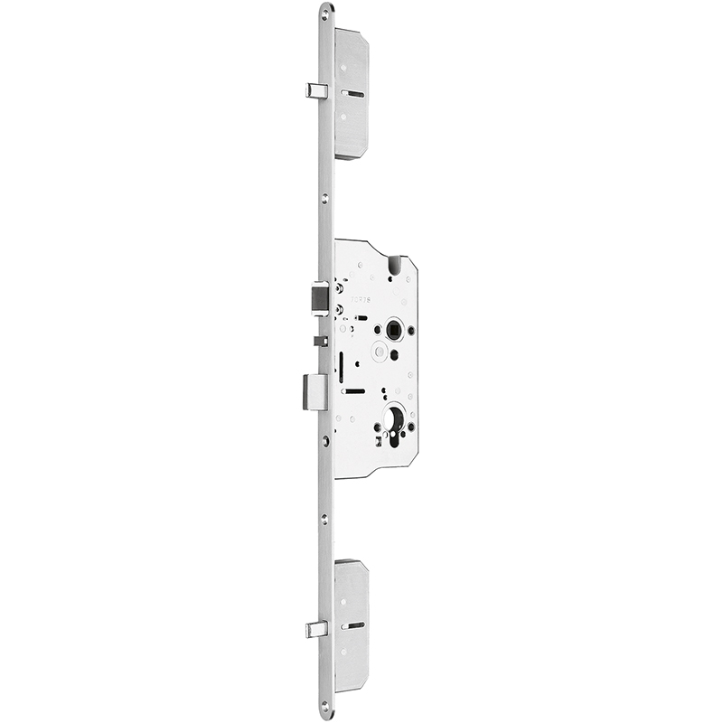 verrouillage mécanique automatique par les 3 pênes trempés en combinaison avec le prolongement supérieur de la têtière triple verrouillage automatique par des pênes ovales massifs, avance du pêne 20 mm fouillot forcé 9 mm en 4 parties, avec fonction de changement