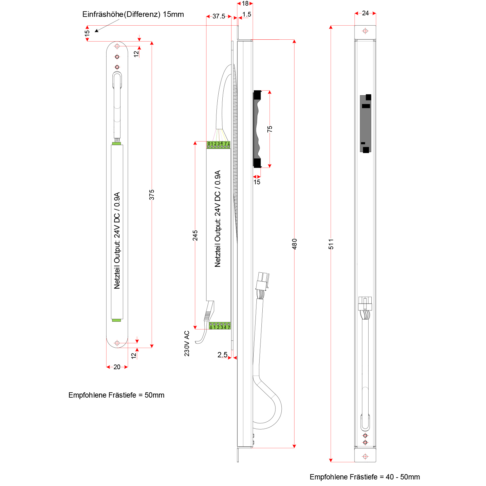 - Passage de câble avec bloc d'alimentation et unité de commande ekey SE micro,