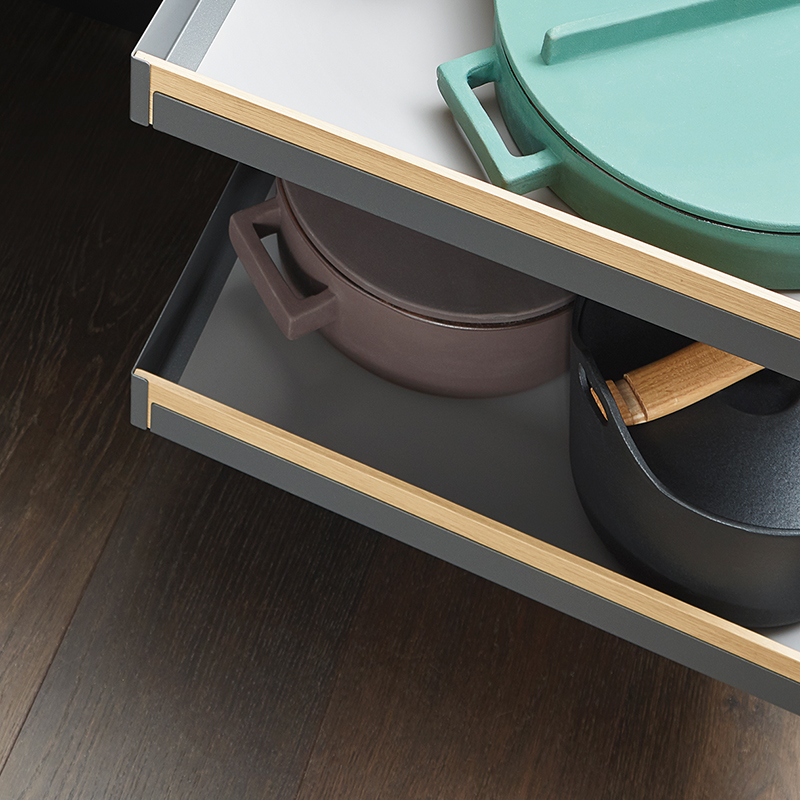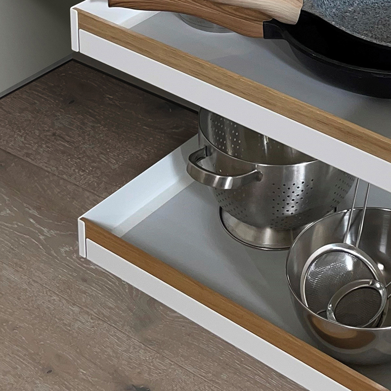 chêne naturel, chêne teinté, insérer l'insert de rail dans la fente prévue à cet effet dans l'étagère Liro, montage sans outil,