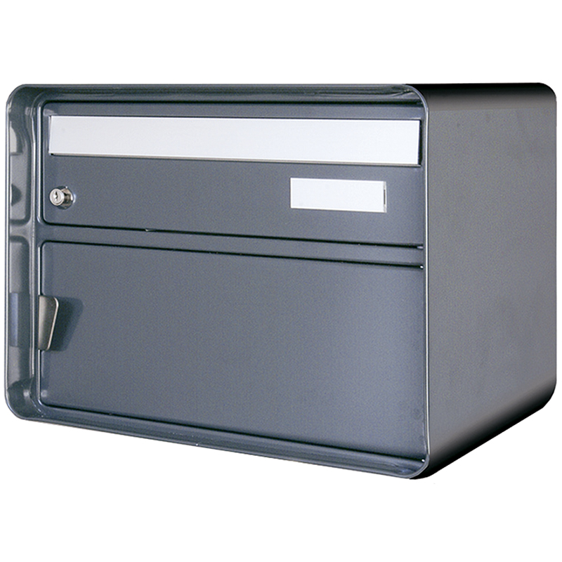 cadre en acier, construction aluminium, RAL7016 gris anthracite, à revêtement pulvérisé, résistant aux intempéries, poignée inox, avec serrure à cylindre et 2 clés dentelées, avec plaque d'identité non gravée