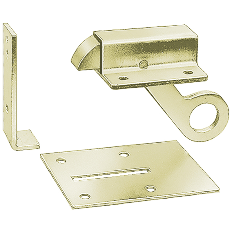 Acier galvanisé jaune, pour fermer les clapets de fermeture d'escaliers de grenier escamotables, avec gâche d'angle rigide et poignée annulaire