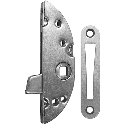 Acier galvanisé, noix 7 mm, distance de perçage 43 mm, avec 2 vis stables M5 x 33 mm, avec gâche arrondie 16 x 77 mm, sans têtière, à encastrer mécaniquement