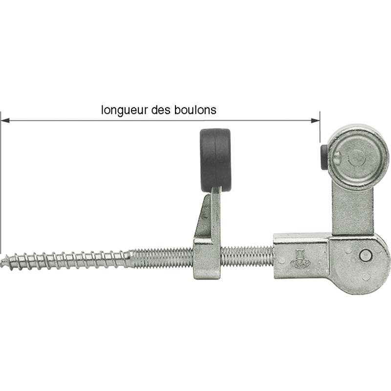 acier galvanisé avec vis inox, tige filetée M10 en acier passivé, réglable pour volet simple ou double, avec protection plastique, tige filetée avec clé à insérer en tournant