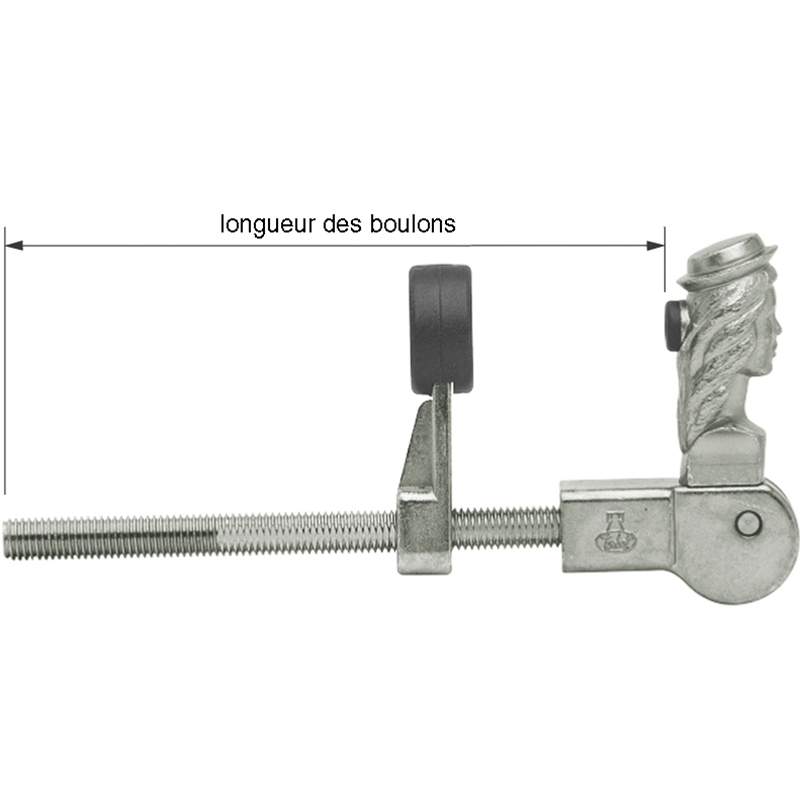 acier galvanisé avec vis inox, tige filetée M10 en acier passivé, réglable pour volet simple ou double, avec protection plastique, tige filetée avec clé à insérer en tournant