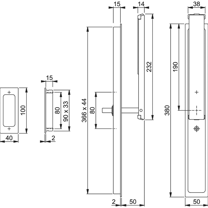 Aluminium, extérieur avec coquille, pour portes-fenêtres, avec cran d'arrêt 180° à bille, intérieur visible, continu,