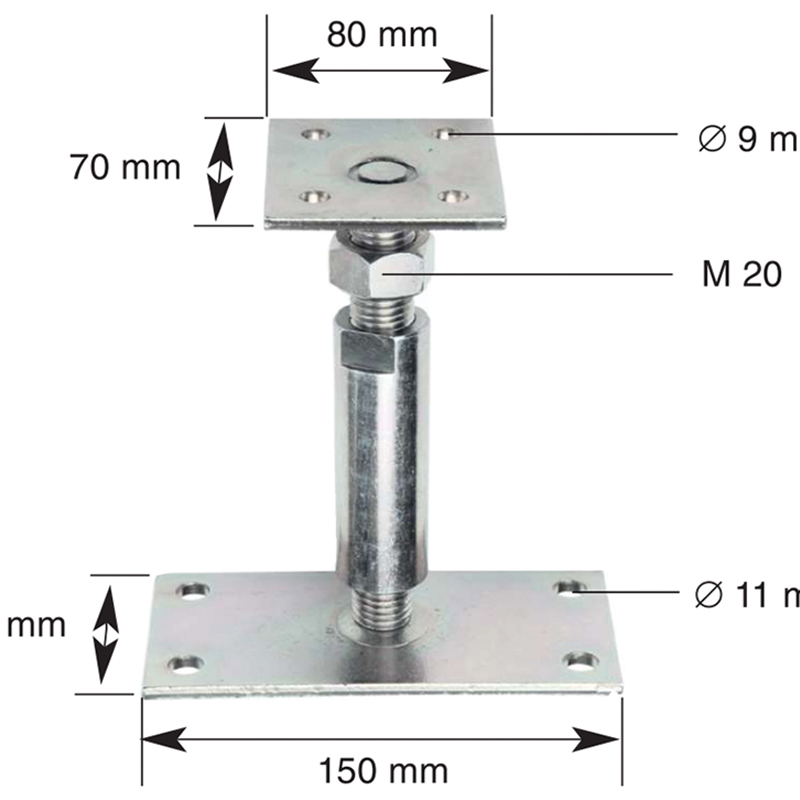 Acier galvanisé, réglable par écrou 6 pans M20,