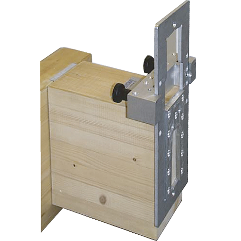 Gabarit permettant le fraisage précis du profil d'assemblage horizontal et vertical sur le support principal et secondaire dans le cas d'un raccord sans joints. Fraise à rainurer Ø 20 mm, bague de copiage Ø 30 mm, profondeur de fraisage maximale: 10 mm.