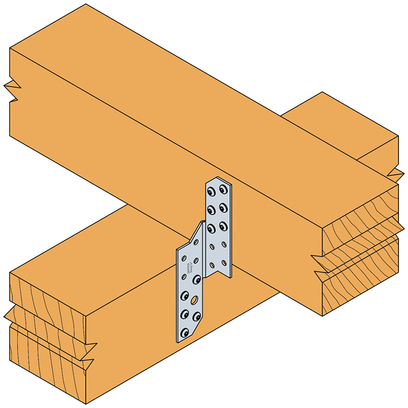 Tôle d'acier galvanisé à chaud, pour les raccords de grande qualité statique contre la pression et la traction, pour les raccords de support, d'appui et de suspension à angle droit et obliques entre les poteaux, chevrons et pannes, épaisseur du matériau 2 mm, Ø de perforation par clou 5 mm