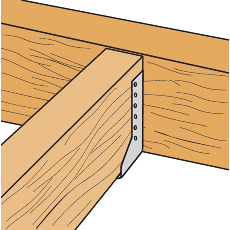 Tôle d'acier galvanisé à chaud, platine coudée vers l'intérieur, pour les raccords bois/bois d'un support secondaire à un support principal ou à des appuis,