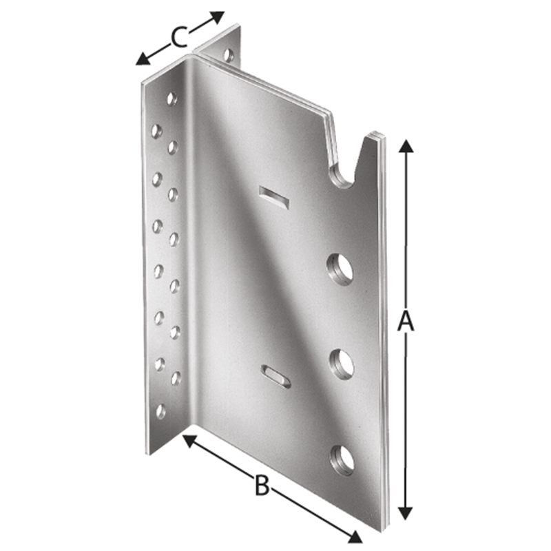 Tôle d'acier galvanisé à chaud, 4 rangées, pour raccords cachés d'un support secondaire à un support principal ou à un appui, perforé pour tourillon, épaisseur du matériau 3 mm, Ø de perforation par clou 5 mm