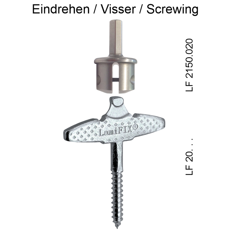 Le connecteur excentrique LamiFIX® LF 20p.W5x38 est le connecteur idéal pour le montage. Il se compose d'une lamelle 20p (45×18×4 mm) et d'une vis à bois 5×38 mm en acier galvanisé. La lamelle est rainurée dans le bois à l'aide d'une fraiseuse à lamelles du commerce (réglage 20). L'excentrique est ensuite placé à l'aide d'une mèche de 14 mm. La forme spéciale de l'excentrique sur le raccord permet un assemblage particulièrement stable et solide, qui peut également être démonté si nécessaire.