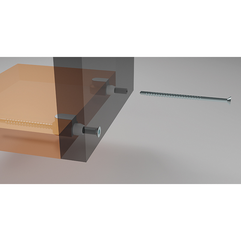 - Nous recommandons des vis pour panneaux d'aggloméré ou des vis autoperceuses d'un diamètre de Ø 4 mm.