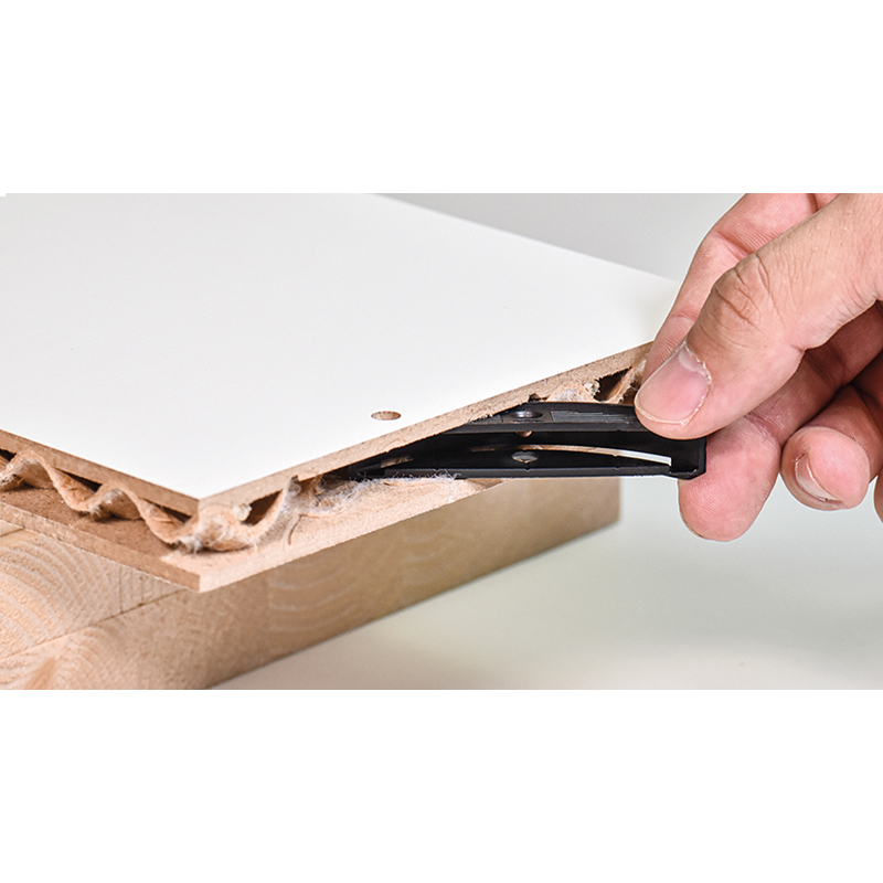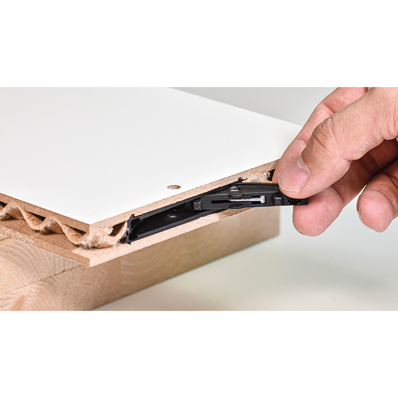 LC P-16 est un assemblage P-System pour panneaux légers, il est ancré de manière sûre dans la couche de finition grâce à son profil, la rainure P-System intégrée permet d'insérer des assembleurs Clamex P sans avoir recours à l'encollage ou à la colle, ce qui prend beaucoup de temps, l'usinage avec deux à trois opérations de fraisage est réalisé soit avec la Zeta P2, soit de manière encore plus efficace, avec le centre d'usinage CNC.