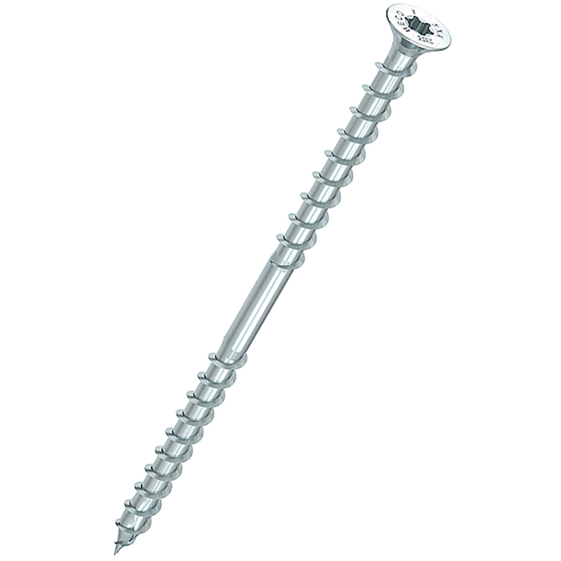 acier galvanisé, tête fraisée, avec tige, avec Torx, avec poches de fraisage pour le fraisage affleurant de la tête dans le bois, la pointe HECO-TOPIX rend le pré-perçage inutile, montages écartés en cas d'isolation sur chevrons et façades isolées, Capacité de charge accrue grâce au filetage UK,