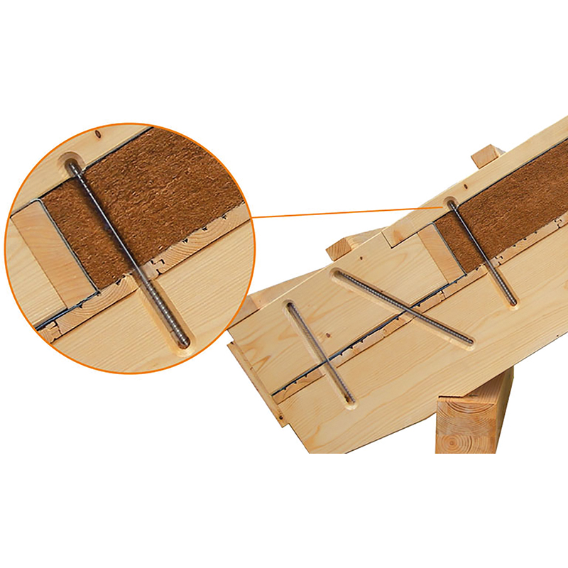 cette vis est particulièrement adaptée au traitement des matériaux d'isolation souples sous pression, avec ses deux filetages, elle permet un assemblage par vis d'écartement dans lequel le filetage de la tête inférieure fixe la contre-latte, les forces telles que la succion du vent et les charges de pression sont transférées du contre-lattis exclusivement par le fil et sont déviées dans le chevron, cela empêche la contre-latte d'être enfoncée dans le matériau isolant, par rapport aux variantes de fixation conventionnelles, HECO-TOPIX-plus Therm offre des avantages en termes de coûts de traitement et de matériaux, grâce aux caractéristiques innovantes HECO-Drive, GripFit (permet de travailler d'une seule main) et PerfectPitch (pas de vis optimal pour chaque longueur de vis et performance parfaite pour toutes les applications du bois), vérification de la conception via le logiciel de conception HECO® HCS ou le service de conception, agrément ETA-19/0553