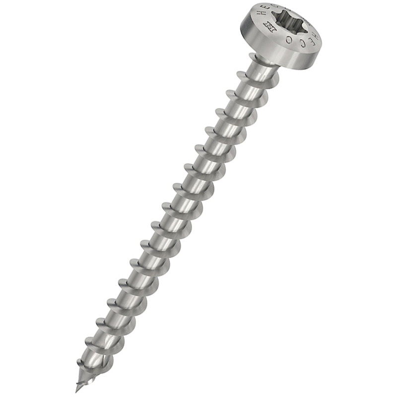 inox A2, filetage plein, avec Torx, grâce aux caractéristiques innovantes HECO-Drive, GripFit (pour le travail d'une seule main), MagicClose (filet total breveté qui contracte les éléments en bois sans interstice et sans précontrainte), et PerfectPitch (un pas de filetage optimal pour toutes les longueurs de vis), associées à un nouveau concept uniformisé de taille d'empreinte et à des accessoires système de grande qualité, HECO-TOPIX®-plus est la vis à bois parfaite pour pratiquement toutes les applications, autorisation ETA-19/0553, autorisation ETA-19/0553