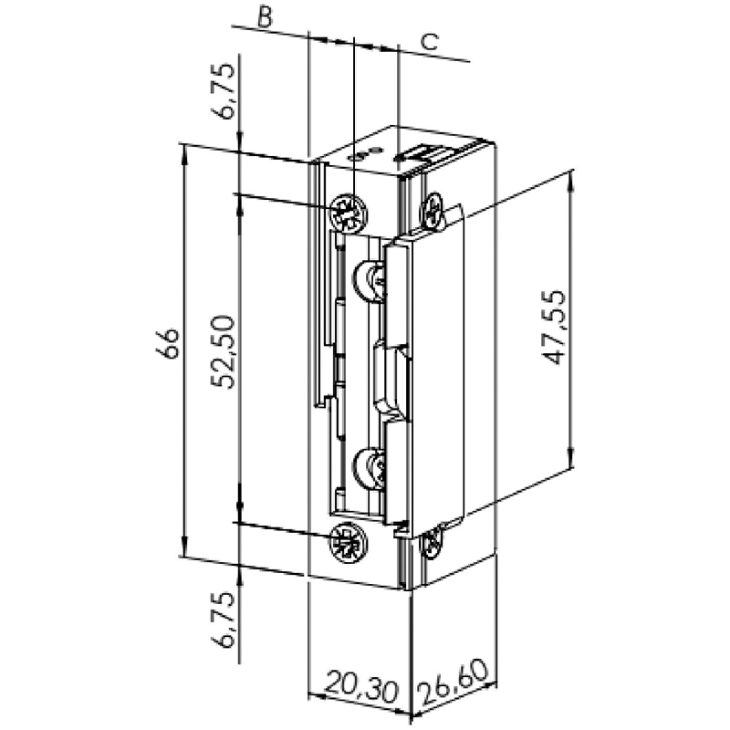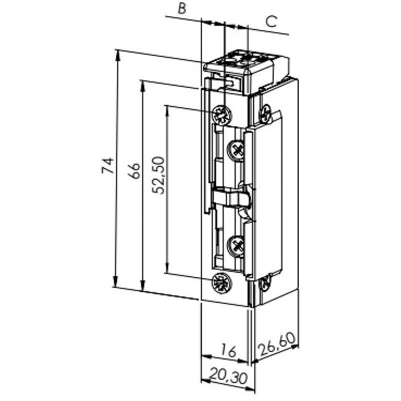 Gâche à platine effeff carrée, pour gâche électrique ProFix 2