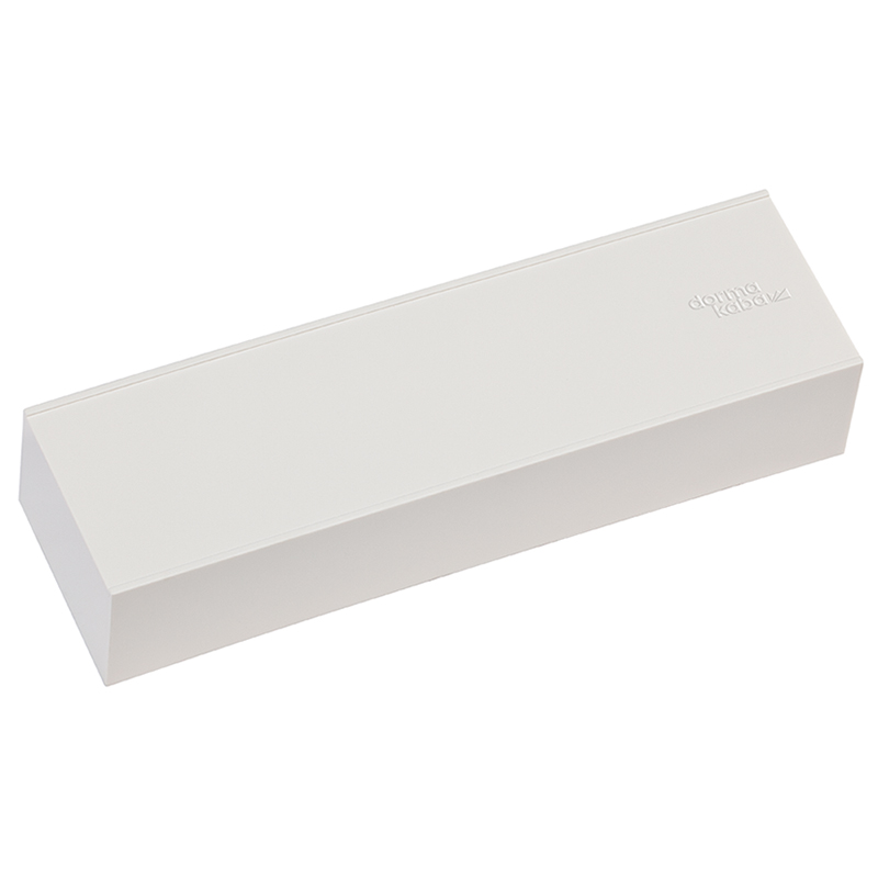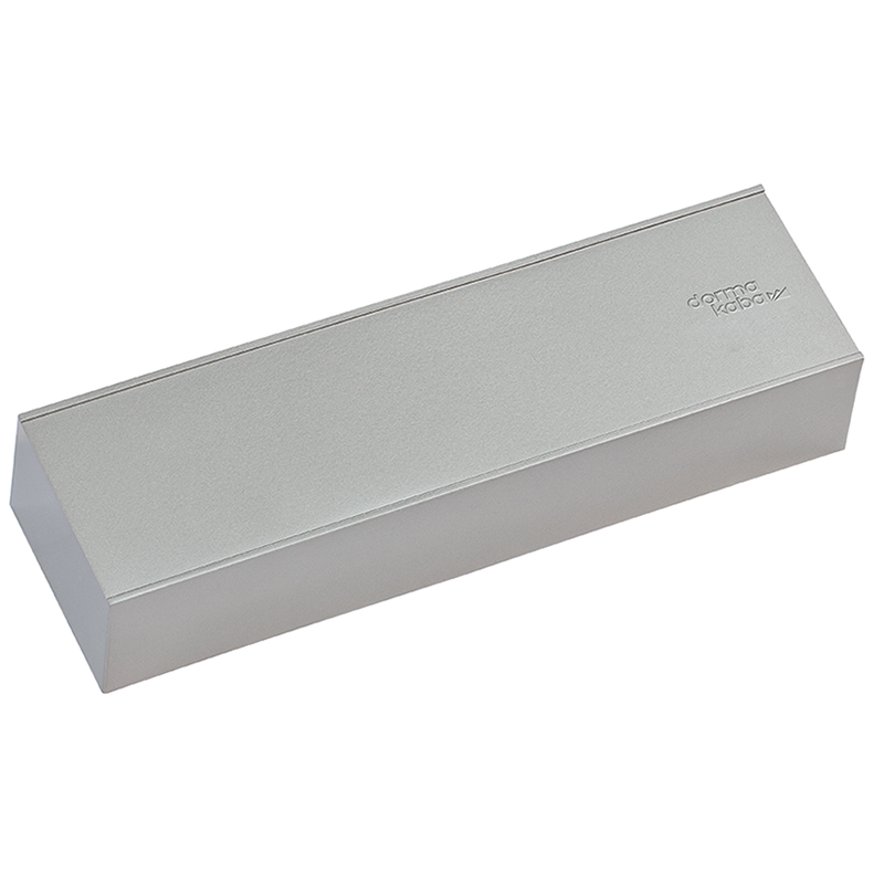 Ferme-porte rapporté à bras avec force de fermeture réglable en continu, vitesse de fermeture réglable en continu via deux soupapes indépendantes l'une de l'autre, butée réglage par bras, pour montage sur battant de porte, côté fiche ainsi que montage en haut de la porte côté opposé à la fiche