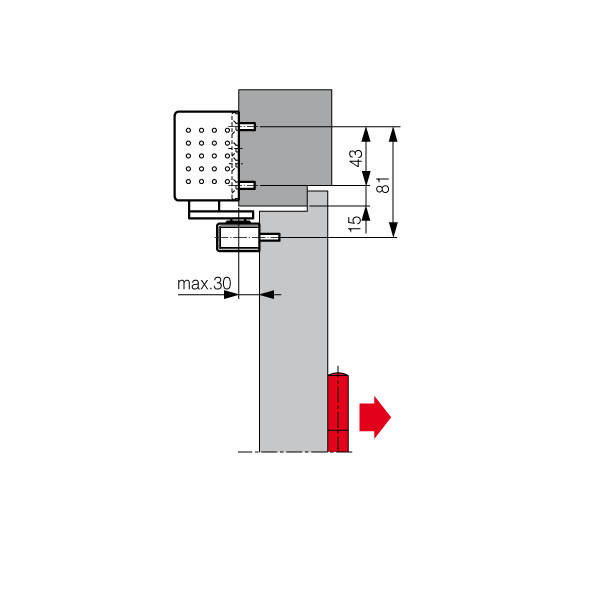 Ferme-porte rapporté à glissière, amortissement d'ouverture réglable en continu via soupape, vitesse de fermeture et butée, force de fermeture réglable en continu via vis de réglage, pour montage sur battant de porte, côté fiche ainsi que montage en haut de la porte côté opposé à la fiche